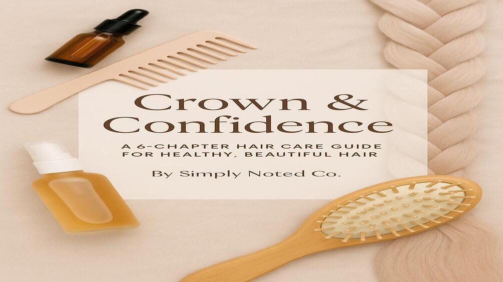 Crown & Confidence is a 6-chapter hair care guide designed to help women achieve healthy, beautiful hair with confidence. Created by Simply Noted Co., this guide walks you through essential hair care principles, from understanding your hair type to building a nourishing routine. Whether you're battling dryness, breakage, or just need a confidence boost, this guide offers practical tips, product insights, and natural care strategies to help you feel empowered — starting with your crown.